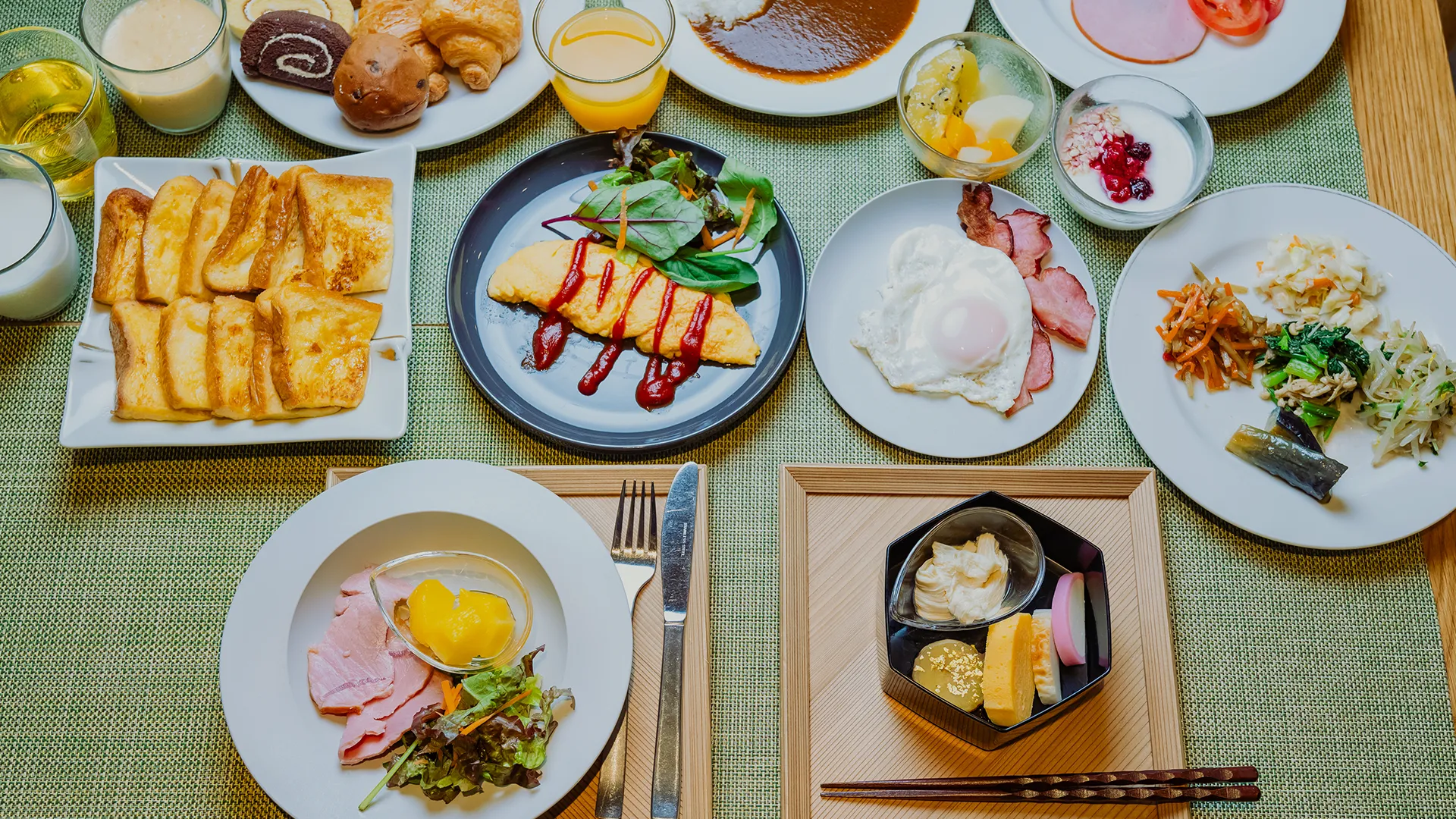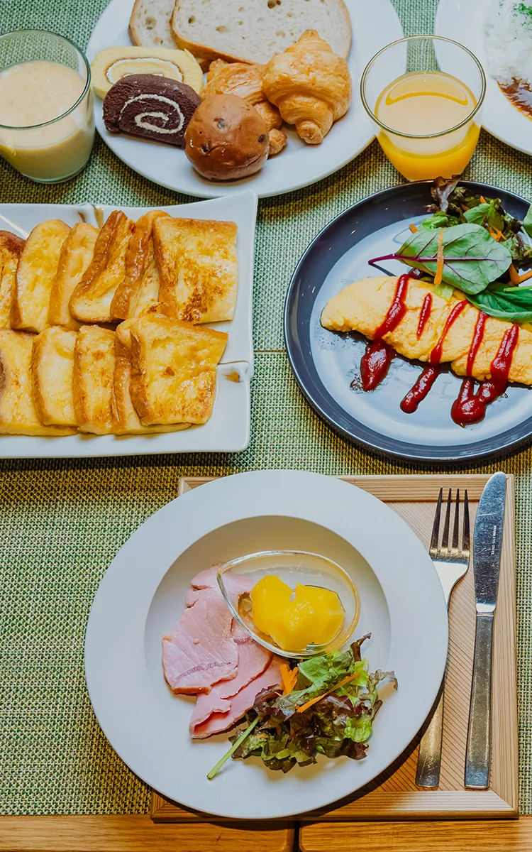 大正2年(1913年)創業の京都老舗のパン屋「進々堂」のパンなど地元京都の食材を使った日替わり朝食をご用意しています。その他、おばんざい、カレー、シリアル、フルーツ、スムージーなど栄養バランスの良い食べ応えのあるご朝食から健やかな1日をスタートしていただけます。
