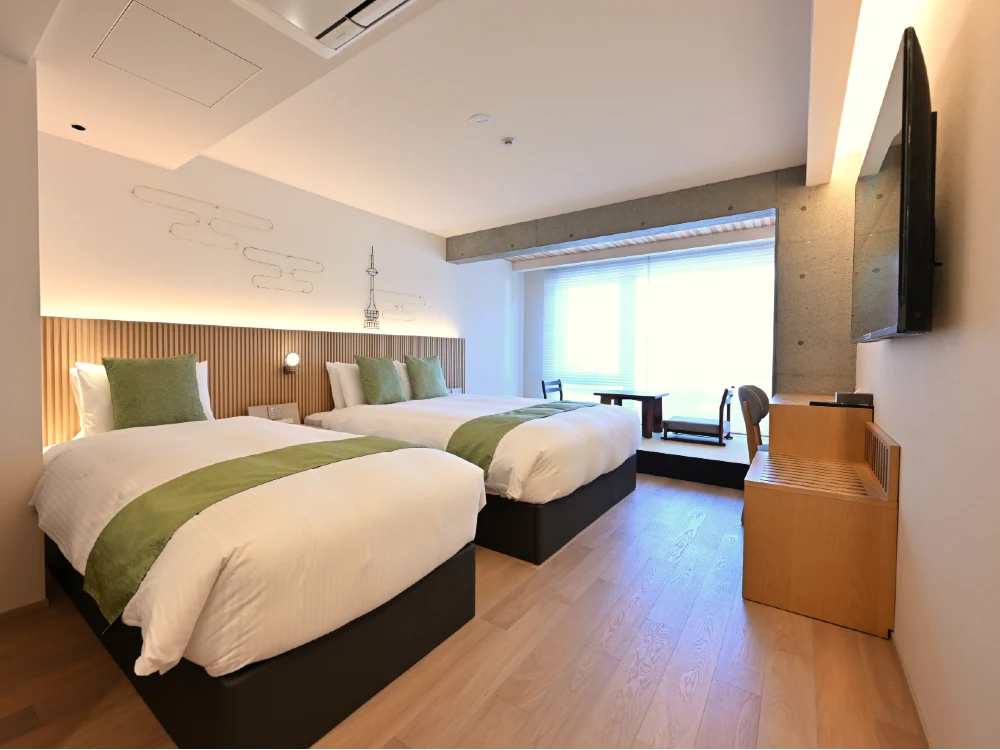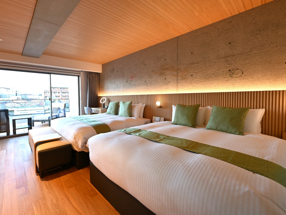 ご家族や外国人観光客様の滞在も見据えて、客室は28〜45m²の広さを確保。京都のホテルにはあまり見られないコネクティングルームも備えており、ファミリーやグループでのご滞在にも柔軟に対応できます。全ての客室にはミニキッチンや電子レンジを完備し、共用のランドリースペースも設置。ファミリーや長期滞在のお客様にも安心してご利用いただける設備を整えています。